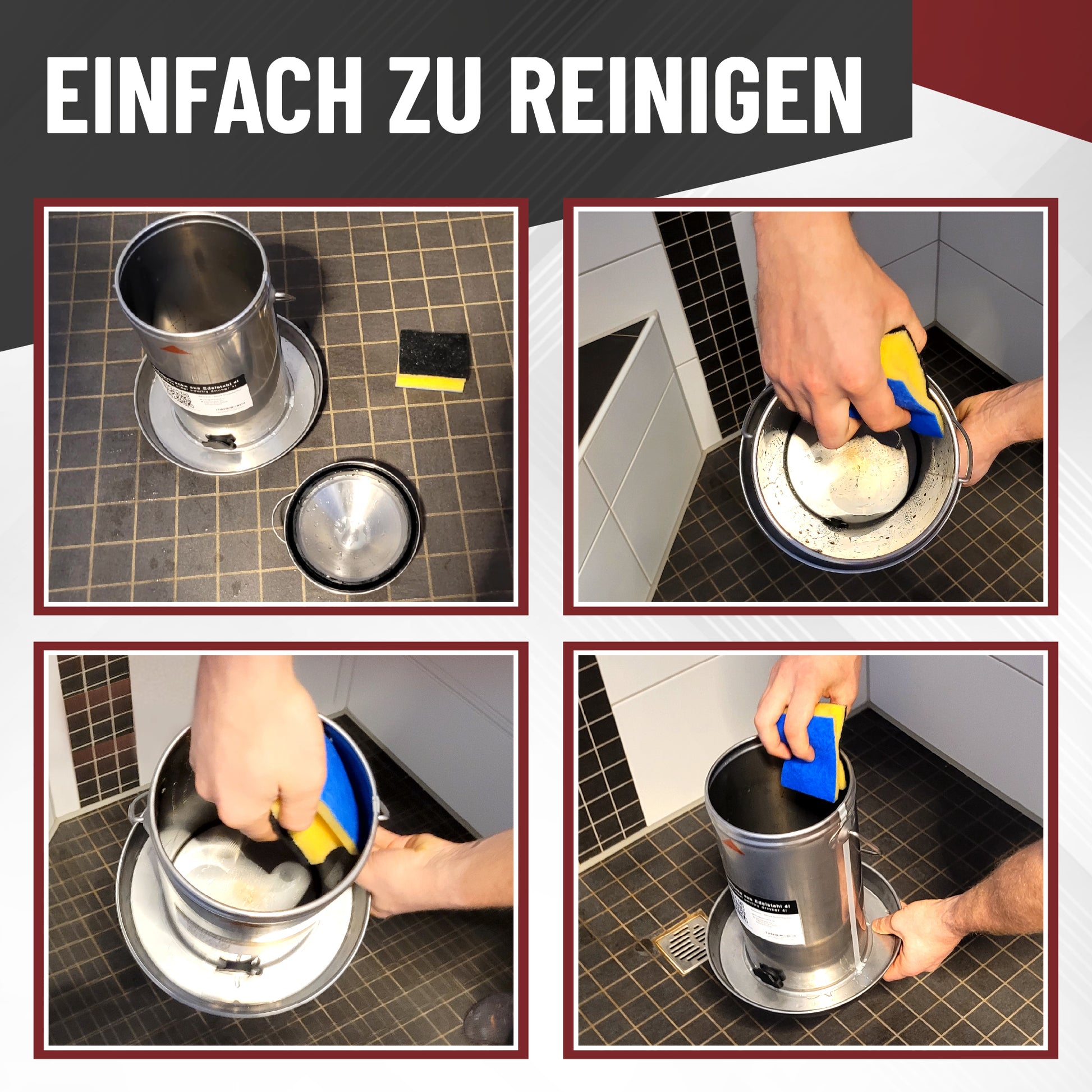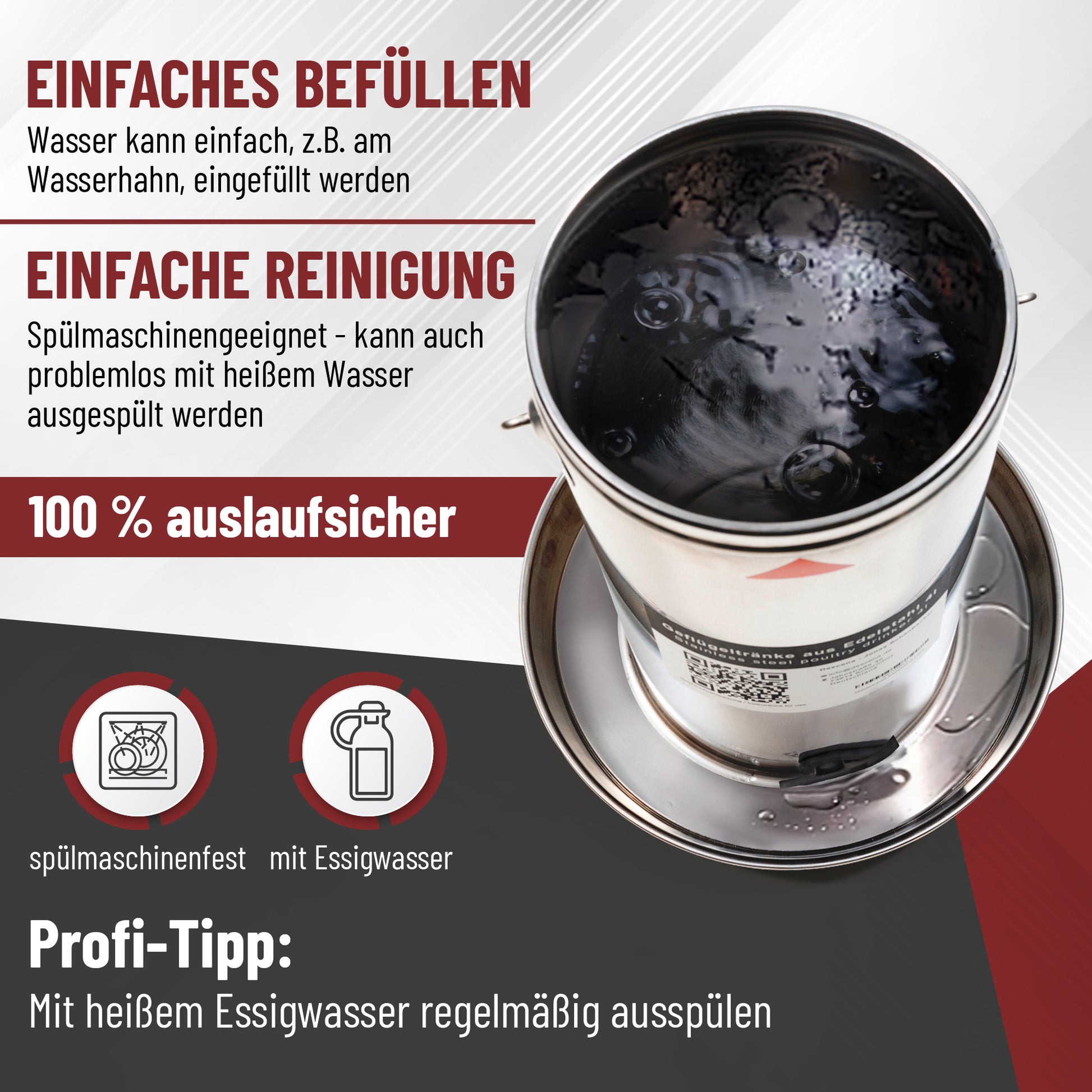 • HINWEIS: An den Schweißpunkten kann bei geschlossenem Stopfen minimal Wasser austreten. Dies beeinträchtigt die Funktion nicht und ermöglicht die feuerfeste Bauweise ohne Klebstoff.