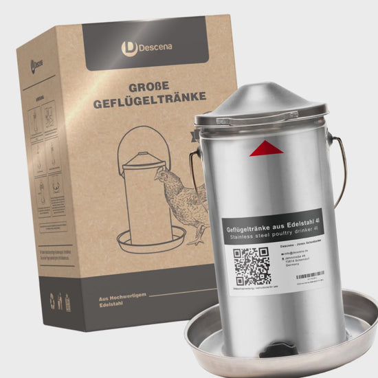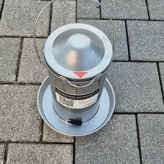 Hochwertige Hühnertränke aus rostfreiem Edelstahl 304 mit 4 Liter Fassungsvermögen.
